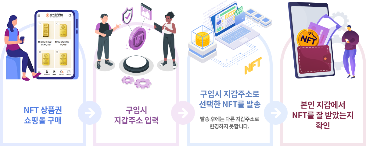NFT는 발행시 블럭체인 주소(변경이 불가능한 주소)가 발행 되고 GOLD BAR NO 가 발행이 됩니다.